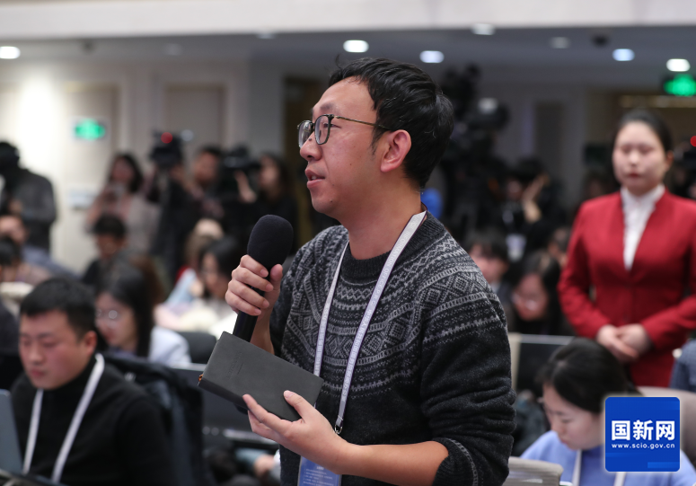 中央广播电视总台记者提问(刘健 摄)