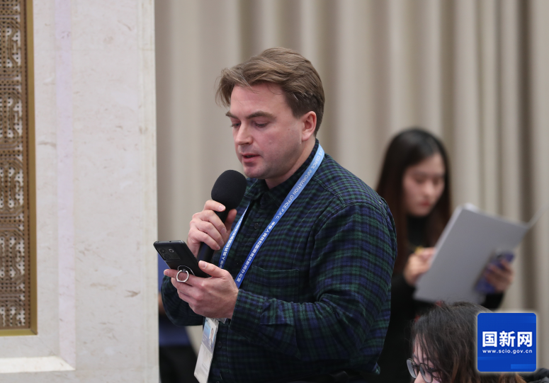 俄通塔斯社记者提问(刘健 摄)